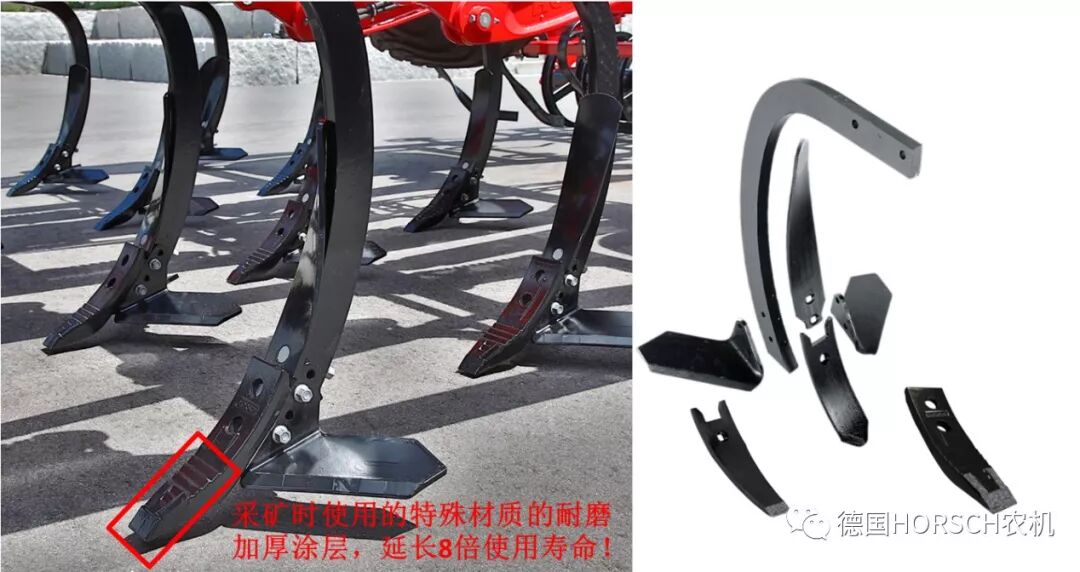 2.独特的流线式钩型设计,配套科学的导土板结构,引导土壤流向,降低拖拉机牵引力需求,同时减少油耗达20%,该项专利技术早在2003年,便通过了德国农业协会的重点测试认证。