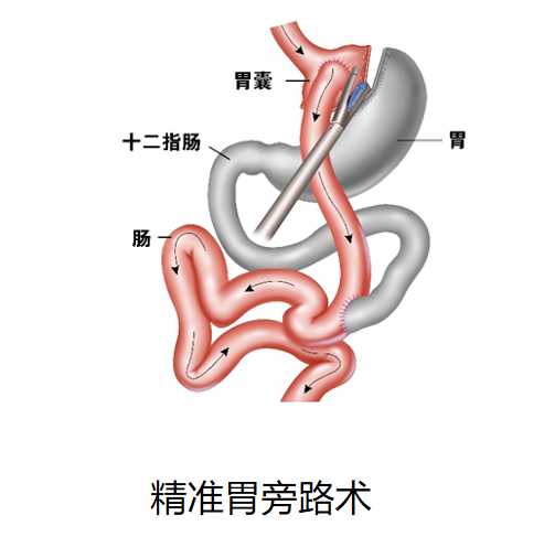 在减重与糖尿病手术中,胃旁路术研究较早且较多,对伴有肥胖症的2型糖尿病患者治疗效果最好。
