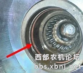 4. 转动挡圈,使凸耳与PTO轴平坦部分错开。