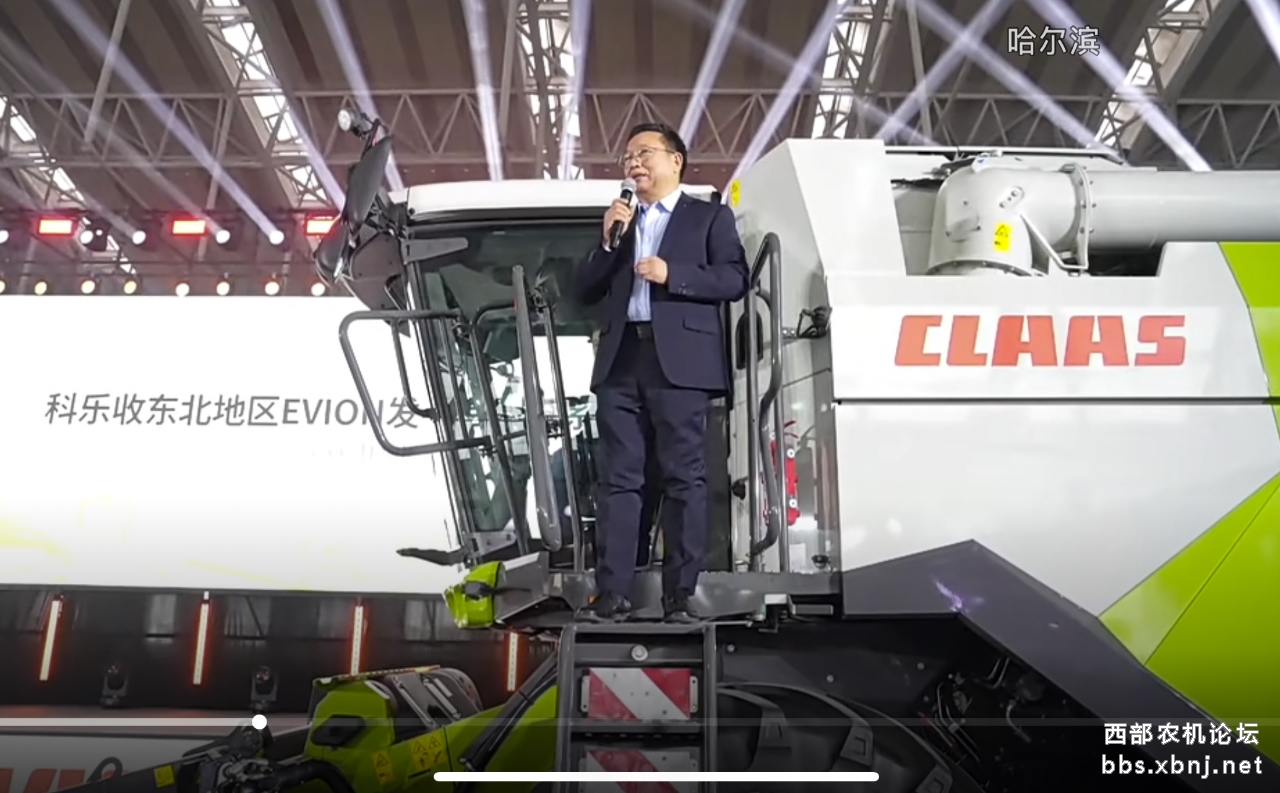 一辆克拉斯EVION580智能联合收割机载着克拉斯销售与服务总经理张金望博士缓缓驶入会场,张博士分享了克拉斯在技术、研发投入和2025年取得的成绩,表达了克拉斯对中国市场以及东北地区的重视,特别感激了农机朋友、经销商的大力支持和同事们的不懈努力,最后祝大家生意兴隆,并希望克拉斯产品尤其是EVION580产品为大家带来更多收益,瑞雪迎朋友,希望大家都有更好的一年。