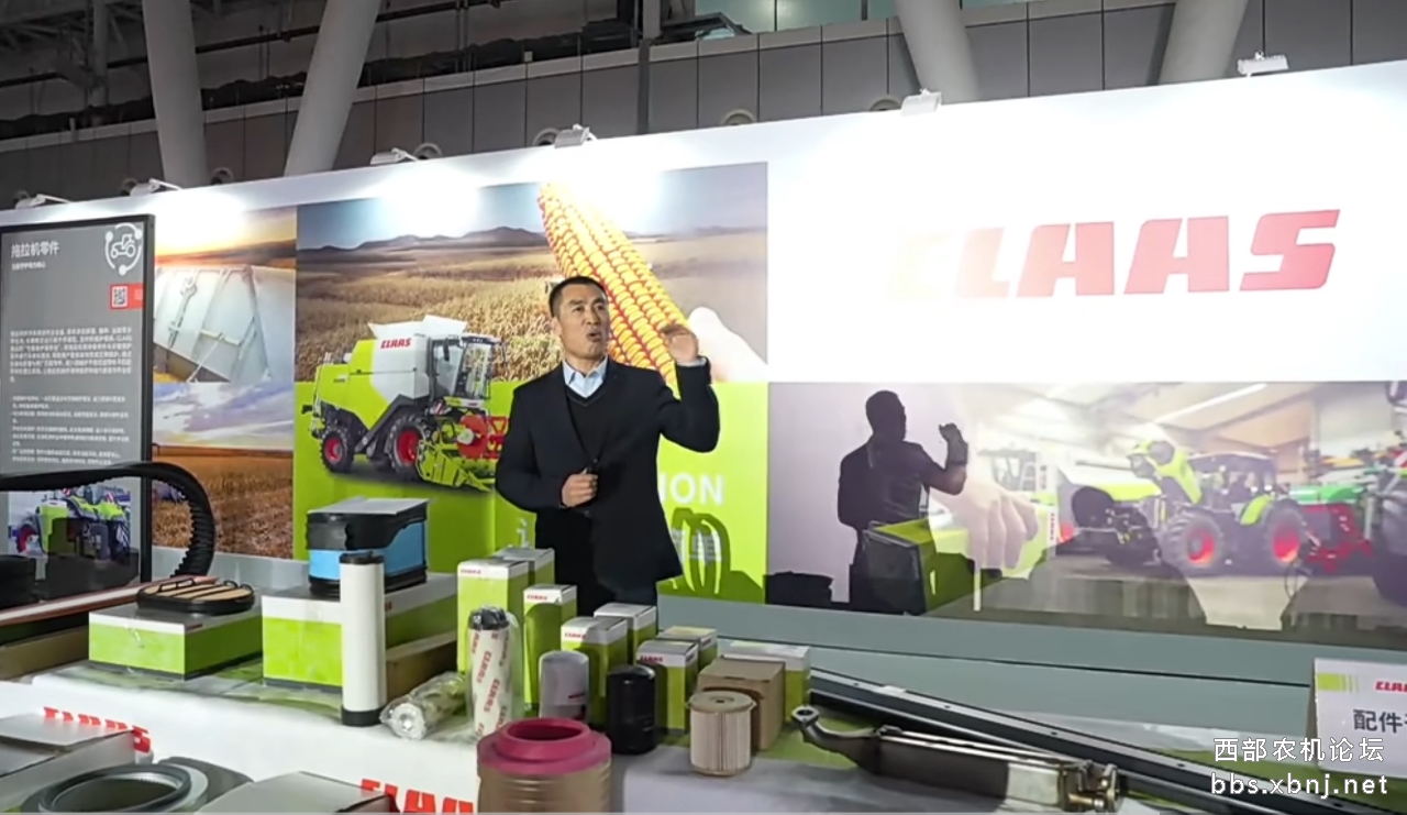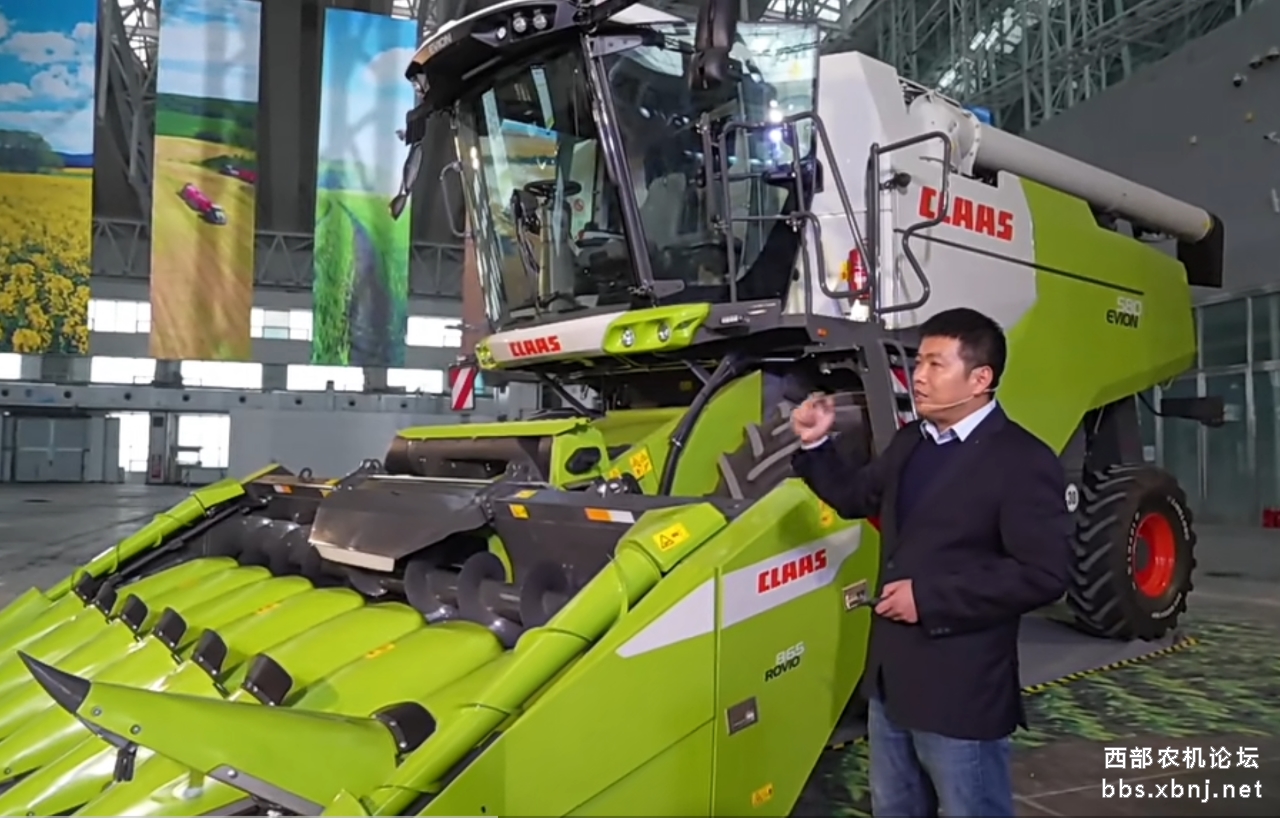 接下来的核心环节就是明星产品EVION联合收割机的展示亮相,克拉斯中国联合收割机产品专家付信伟先生为大家详细介绍了克拉斯联合收割机系列产品。其中专为中国作业环境深度优化的EVION 580智能联合收割机堪称“主粮收获利器”,它搭载261马力康明斯发动机,搭配8000升大容量粮箱与8行玉米割台(能配置六种不同种类的谷物割台),能显著提升作业连续性,90升/秒的卸粮速度可实现一分半钟完成卸粮作业。该机型配备的智能作物流监控、3D清选系统与损失监测功能,可精准控制籽粒损失率,四驱驱动与液压保护系统更强化了在东北春季泥泞地块的通过性,完美适配玉米、大豆等主粮作物收获场景。