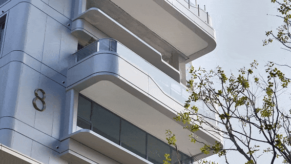 ②徐州唯一的流体美学立面,新盛·未来新七里是徐州首个双曲面立面楼盘,外立面转角铝板、转角阳台玻璃全部做了弧形打磨,打破了一般城市建筑的僵硬感。