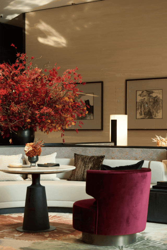 ③“美术馆标准”打造2500㎡会所空间:负一层打造三大社交场景,有行政酒廊、景观洽谈区、VIP洽谈区,一楼打造四大休闲场景,同时还打造了两大健身场景,采用创新工艺、大胆的配色,仿佛置身于艺术场馆。